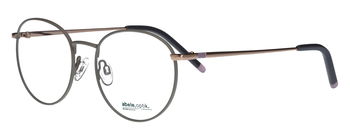 Die hellgraue, matte Farbgebung der Fassung verleiht der Brille eine dezente und elegante Note, während die rotgoldenen Bügel einen edlen und modernen Akzent setzen. Die runde Form ist zeitlos und vielseitig, passend für jeden Anlass.