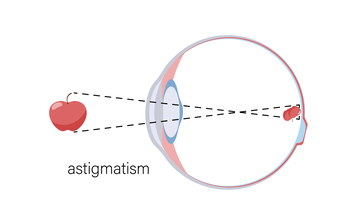 Beim Astigmatismus (auf Deutsch übersetzt: „Punktlosigkeit“) ist die Hornhaut des Auges nicht wie gewöhnlich halbkugelförmig gewölbt, sondern vertikal oder horizontal stärker gekrümmt. Daraus resultiert ein Brechungsfehler des Auges. Der Lichtpunkt, der auf die Netzhaut trifft, wird auf dieser verzerrt dargestellt.
