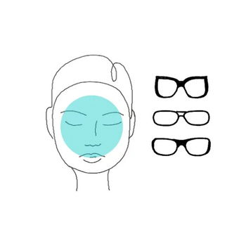 Bei einem runden Gesicht sollte man eine eckige Brille wählen, die noch dazu breit ist. Dabei sollte der seitliche Rand des Brillengestells auch bis zum seitlichen Rand des Gesichts reichen.