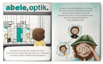 Viele Kinder fühlen sich mit einer Brille anfangs unwohl. Abele Optik hat daher ein Kinderbuch erschaffen, in dem das Tragen der ersten Brille in kindgerechte Worte und zauberhafte Illustrationen gefasst wird. So soll den Kleinsten die Unsicherheit, eine Brille zu tragen, genommen werden und die Vorteile einer Sehhilfe spielerisch nahegebracht werden.
