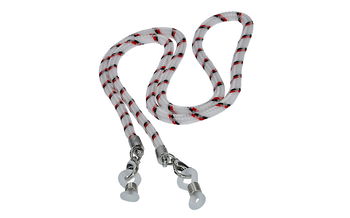 Brillenband aus Stoff in weiß mit rot und schwarz für Sonnenbrillen und Brillen.