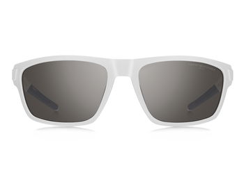 Stilvolles Design: Die Kombination aus matt weißer Fassung und silber verspiegelten Gläsern macht diese Brille zu einem echten Hingucker.